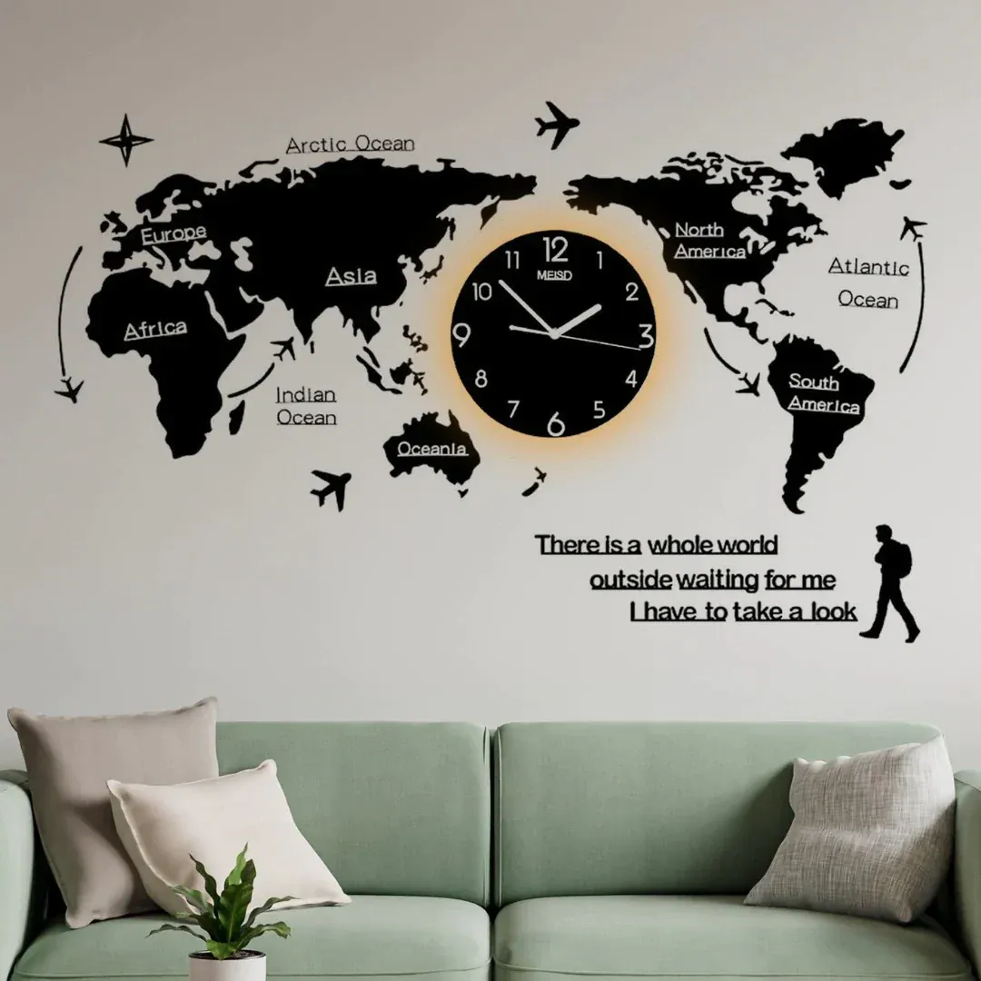 Product details of 3D Wooden Wall Clock | World Map Wall Clock | DIY Wall Clock World Map Wooden Wall Clock for Home and Offices, Wall Clock For Bedroom.